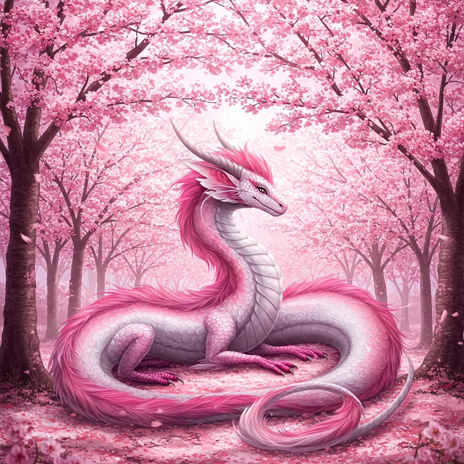 Harmonious Asfulda was a dragon unlike any other. Her scales were a breathtaking blend of soft pink and pristine white, and she moved with an ethereal grace that belied her immense size. She was often found amidst groves of colossal elder trees, their pink blossoms mirroring the hues of her scales, creating an aura of serene beauty that captivated all who beheld her. Her very presence seemed to calm the savage hearts of even the most ferocious beasts. And, unusually for a Dragon King, she possessed potent healing abilities, a gift that was both revered and sought after.