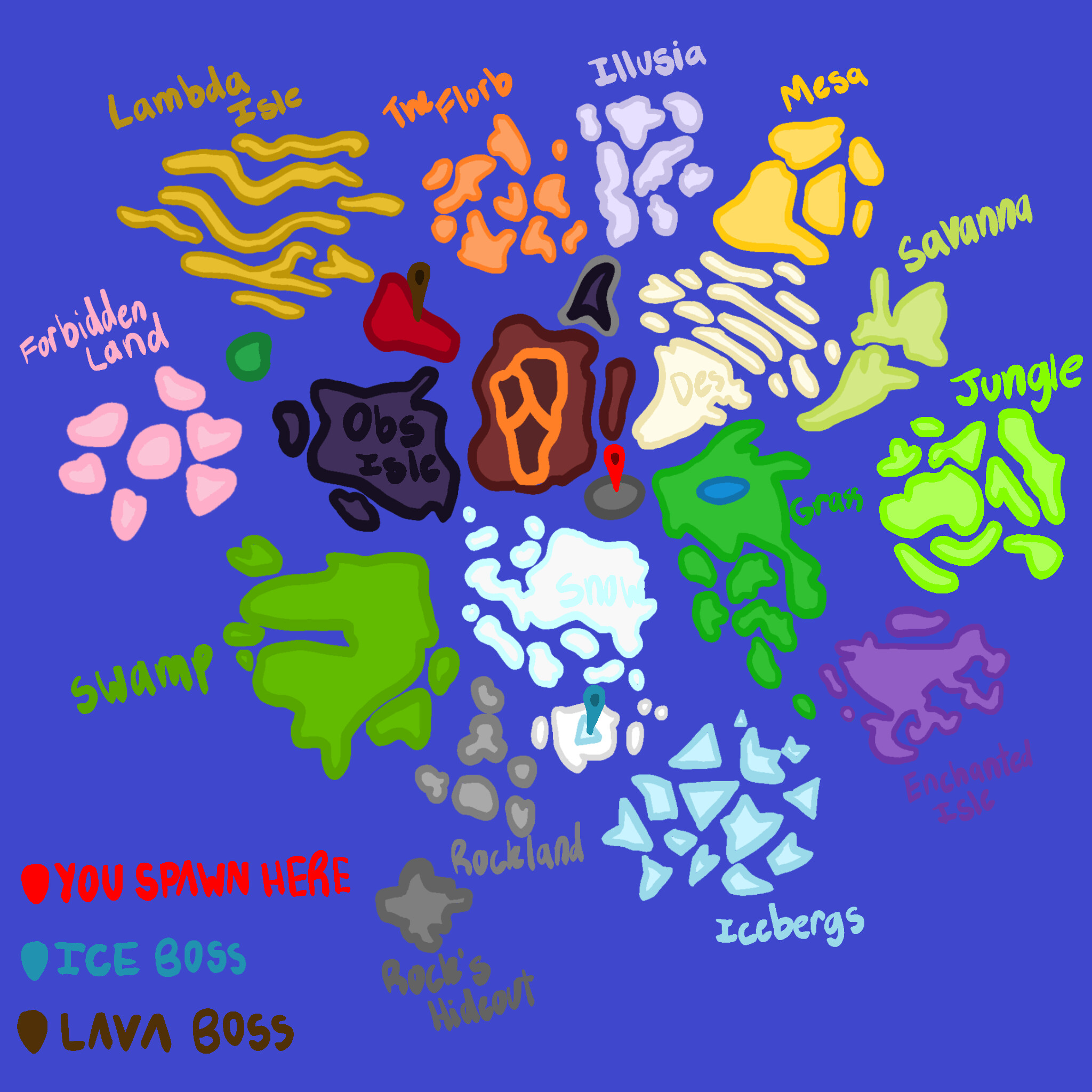 Itās a bit cramped, but I tried to make it a little cleaner. I failed, but hereās the one I came up with in case you want to humour me. Colours correspond to the outline of each island/biome. (If you could add the names to the ones I couldnāt fit, Iād appreciate it)