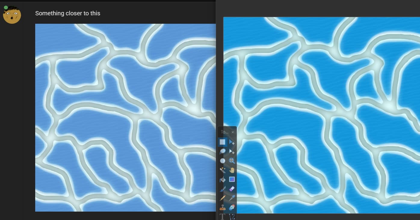 There’s some texture underneath the water (I used sand as an example, and the light’s reflection is a very slightly yellower shade while also making it lighter.