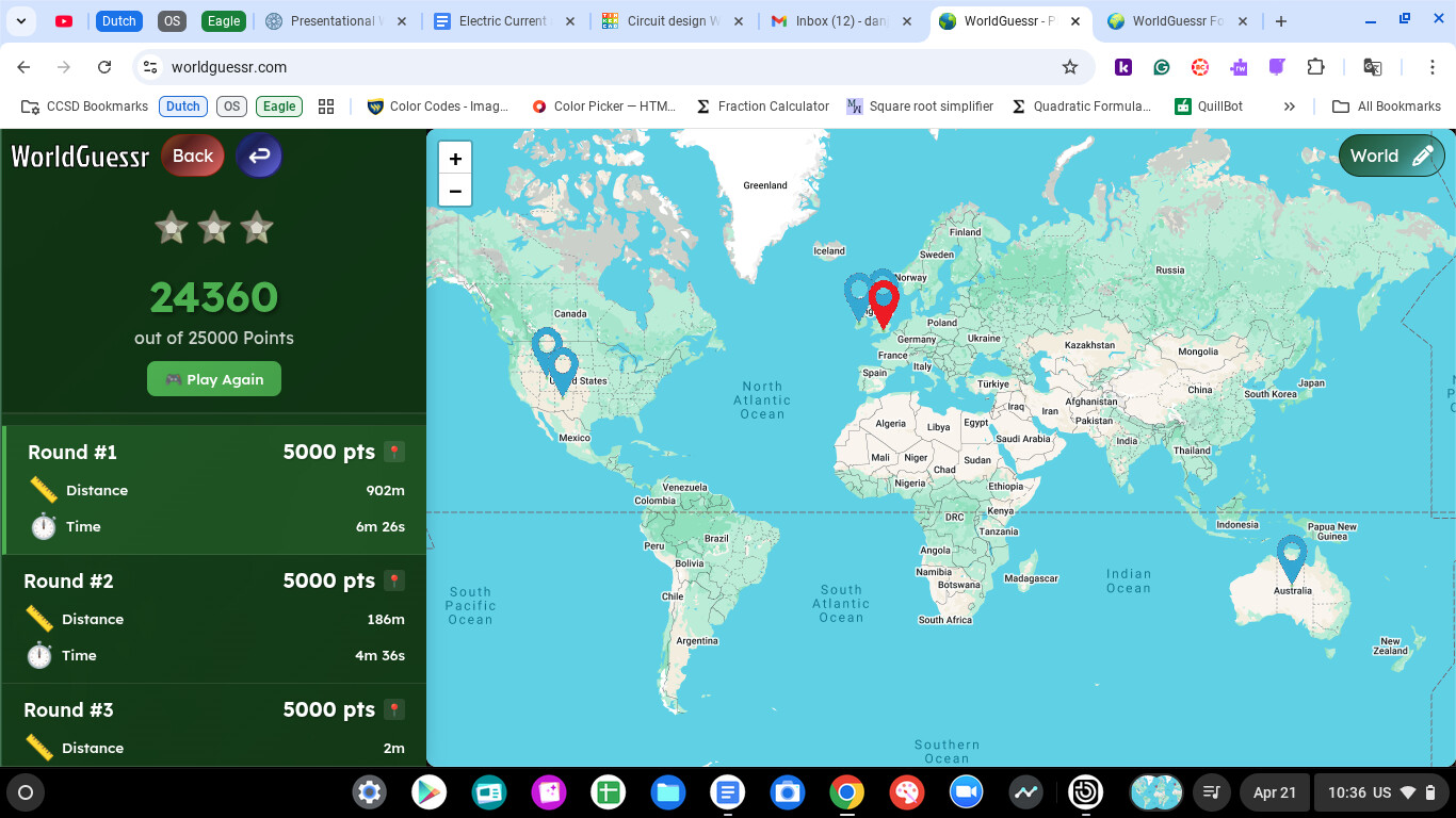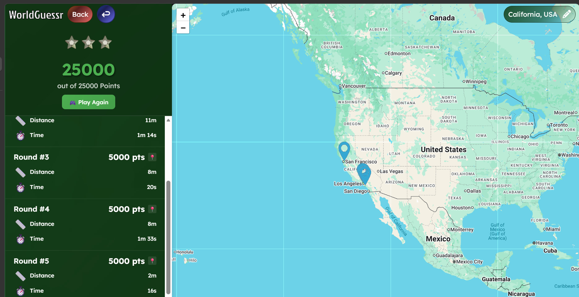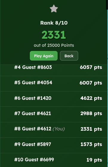 Its a pb, but could have been a perfect game, unfortunate misclick on the guess button in england.
